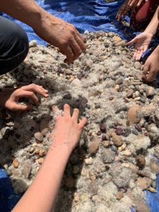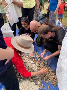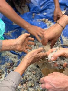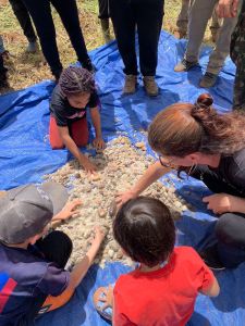 Na etapa prática, os participantes tiveram a oportunidade de aplicar os conhecimentos adquiridos em uma área de Cerrado sentido restrito, realizando o plantio de mudas e sementes utilizando a técnica da muvuca. Essa abordagem combina diferentes estratos ecológicos – arbóreo, arbustivo e herbáceo – para simular a complexidade natural do bioma. Durante a atividade, os participantes aprenderam sobre a seleção de sementes, a mistura ideal e a sequência correta de plantio.