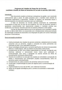 A Comissão Eleitoral da Rede de Sementes do Cerrado (RSC) divulga a chapa única registrada para as Eleições da Diretoria e dos Conselhos Fiscal e Consultivo (Gestão 2020-2022).