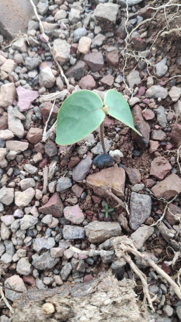 Há pouco menos de um mês do plantio realizado por meio da técnica da semeadura direta no Projeto de Assentamento (P.A.) Mingau, no município de São João D’Aliança (GO), é possível perceber a germinação de espécies como aroeira, mirindiba, lobeira, capim fiapo, gonçalo, baru, dentre outros.