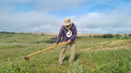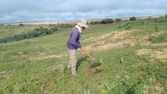 Já a enxada, conforme Fábio Júnior serve para retirar os capins de áreas com menor número da exótica, onde o braquiária é menor que o nativo. O técnico de campo pontuou ainda que as germinações da área têm trazido resultados significativos. “Podemos dizer que a germinação já aconteceu em 80% da área e com a retirada do capim a expectativa é que o crescimento aconteça de forma mais acelerada.