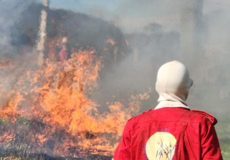 Em Alto Paraíso equipe realiza queima controlada de área em restauração Visando preparar o solo para o plantio por meio da técnica da semeadura direta,