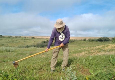 Dando continuidade às ações de retirada de Espécies Exóticas Invasoras (EEI), introduzidas na área de restauração localizada no Projeto de Assentamento (P.A.) Mingau, em São