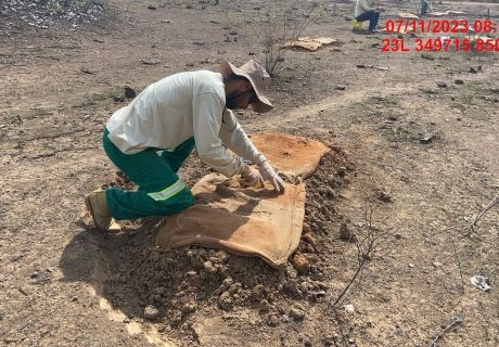 As biomantas são materiais compostos por fibras vegetais, como o capim residual coletado em áreas de manejo, que funcionam como uma cobertura protetora para solos degradados ou produzidos a partir da juta. Conforme explica Alba Cordeiro, Coordenadora do projeto, sua principal função é auxiliar na fixação de sementes, reduzir processos erosivos e criar condições para o estabelecimento de vegetação nativa em áreas vulneráveis, como encostas e regiões afetadas por erosão. “No Parque Estadual Terra Ronca, por exemplo, as biomantas têm sido utilizadas em conjunto com sacos de juta, onde são colocados matéria orgânica, adubo e uma mistura de sementes nativas, fornecendo um ambiente propício para a restauração ambiental e a regeneração da área”, disse.