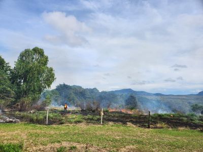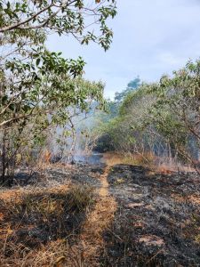 Visando preparar o solo para o plantio por meio da técnica da semeadura direta, a equipe do Projeto Águas Cerratenses: semear para brotar, realizou nesta quinta-feira, 13, a queima controlada de área, na fazenda Hy Brasil, em Alto Paraíso de Goiás (GO). A iniciativa trata-se de uma etapa do preparo do solo, uma vez que após arado é comum que o capim exótico rebrote.
