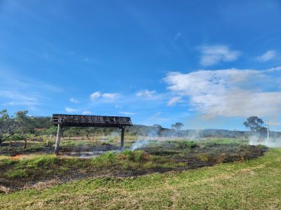 A Fazenda Hy Brasil é uma das propriedades beneficiadas com o Projeto Águas Cerratenses: semear para brotar. A queima foi realizada em parte dos 15 hectares que serão restaurados através do projeto.