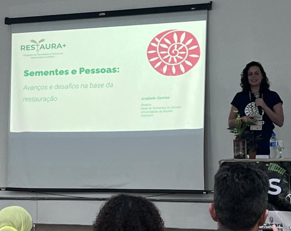 Ainda durante o simpósio, a coordenadora do Núcleo de Pesquisa e Desenvolvimento, Jamily Pereira e a coordenadora do Núcleo de Restauração da Rede, Maria Eduarda Camargo apresentaram o trabalho “Restauração ecológica inclusiva: comunidades como protagonistas na restauração de ecossistemas do Cerrado”.