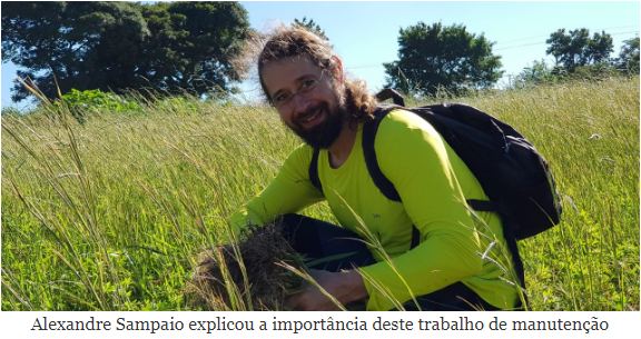 Coordenador do Projeto “Mercado de Sementes e Restauração: Provendo Serviços Ambientais e Biodiversidade”, Alexandre Sampaio explicou a importância deste trabalho de manutenção. “A brachiaria é uma espécie de capim utilizado para a pastagem do gado. A gramínea, conhecida como uma espécie exótica exige uma quantidade maior de água para o seu crescimento, desenvolve rapidamente abafando as outras plantas, reduzindo o volume de águas das chuvas que vão para o lençol freático e garantem a qualidade das nascentes do Parque”, disse.